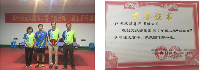 近日,由创元投资集团工联会、团委联合举办的2017年第二届“创元杯”乒乓球比赛圆满结束。比赛共有24支代表队120名选手参加,公司全资子公司江苏苏净参加了此次比赛,经过紧张激烈的角逐,最终获得了此次比赛的冠军。